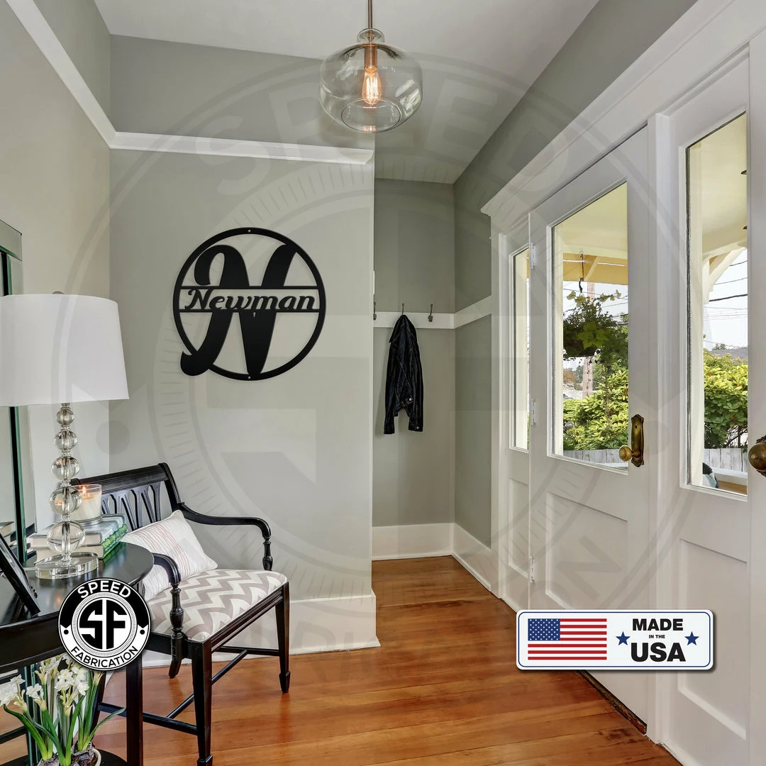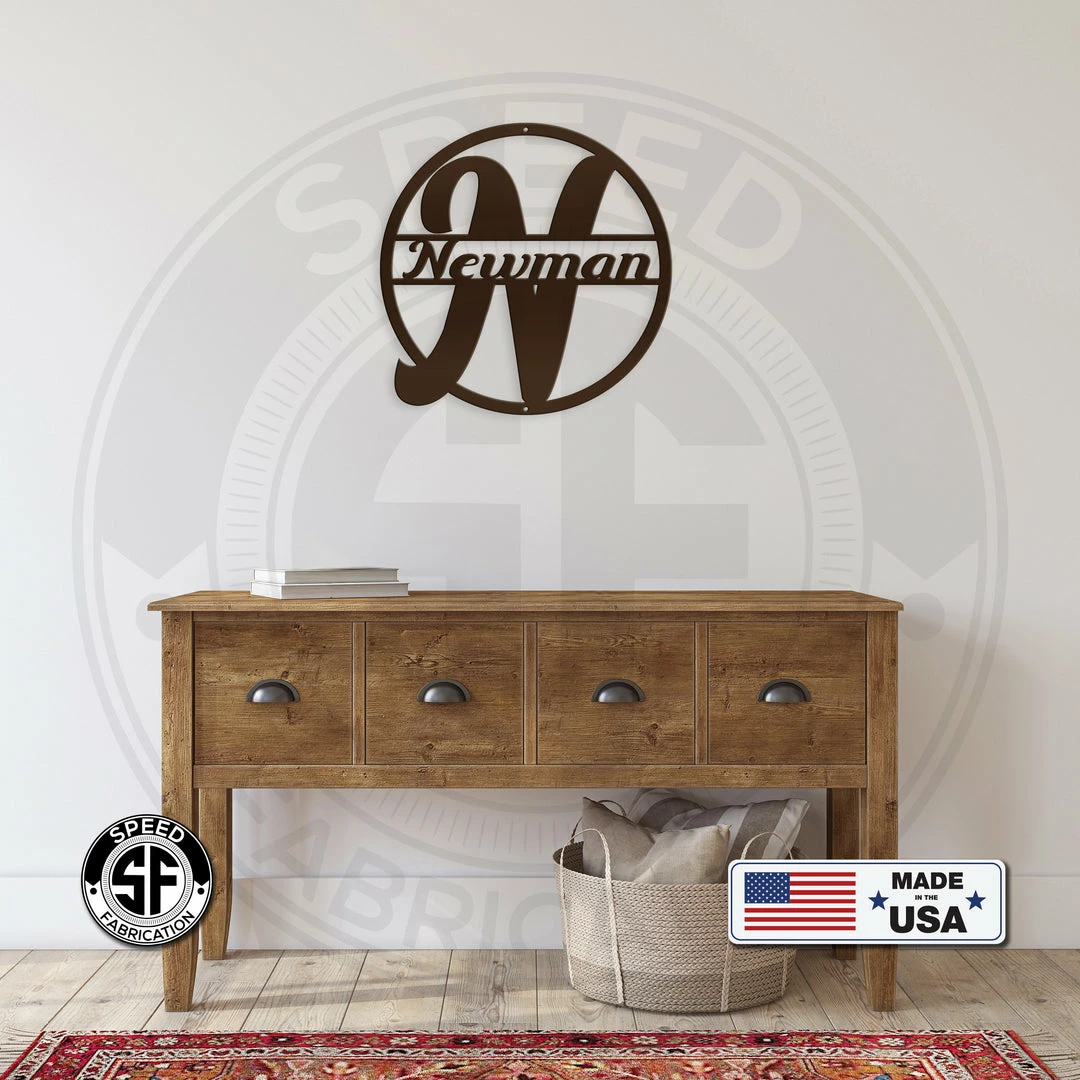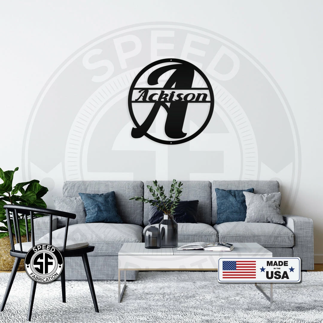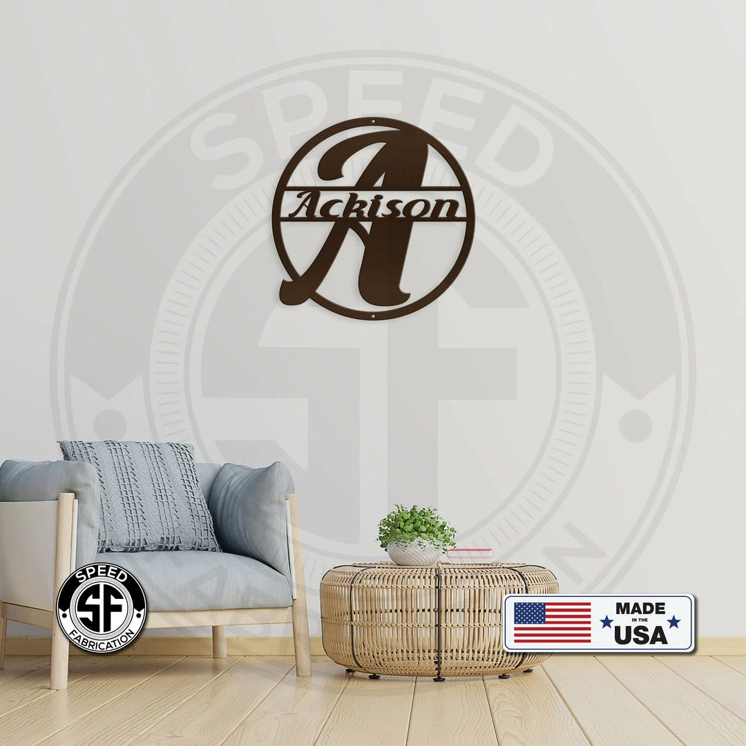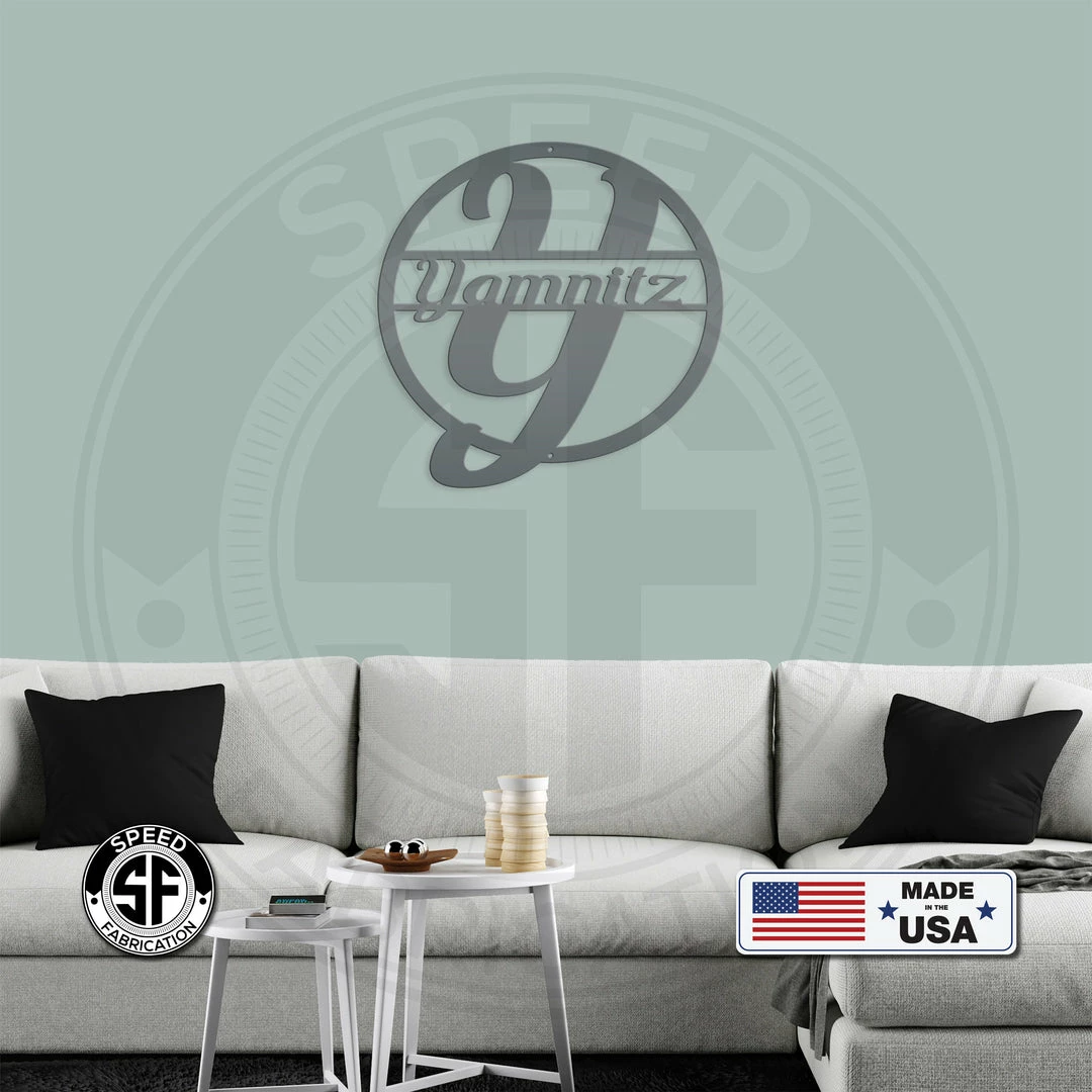 This Personalized Monogram And Family Name Round Metal Sign is the perfect decor for any home. Our 12″ through 28″ signs are made from 16 gauge steel, 30″ through 36″ signs are made from 14 gauge steel with a powder coated finish for a long lasting sign indoors or outdoors.