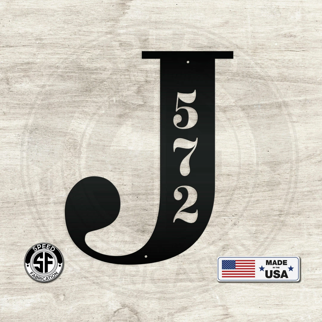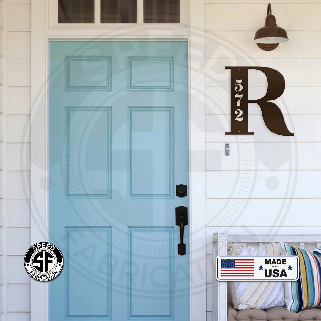 This Personalized Monogram and House Number Metal Sign is the perfect sign to display your home address. This sign is made from 14 gauge steel with a powder coated finish for a long lasting sign indoors or outdoors. Dimensions are based on height of sign. A 12″ sign is 12″ tall and 6″ wide. A 24″ sign would be 24″ tall and 12″ wide