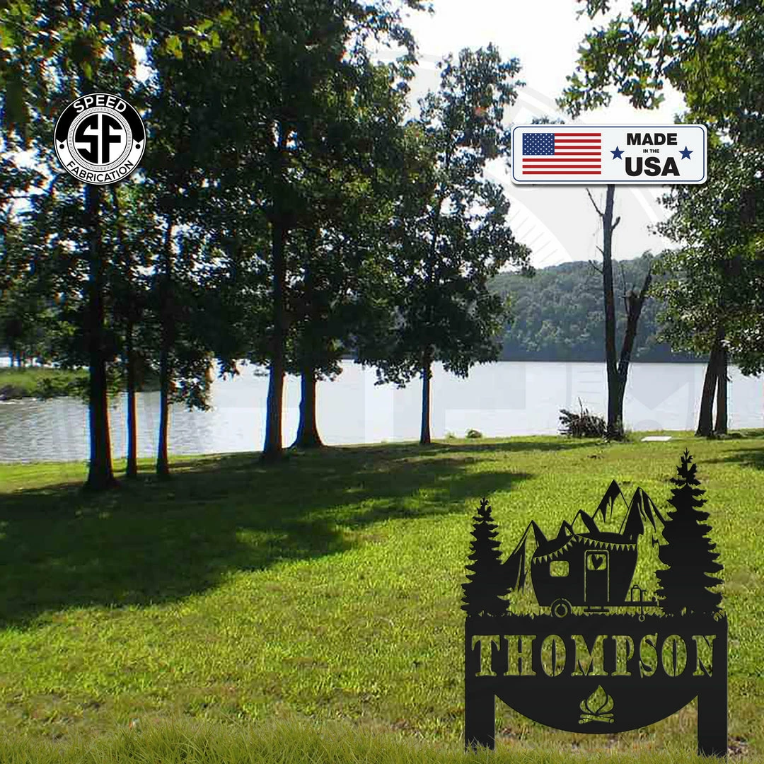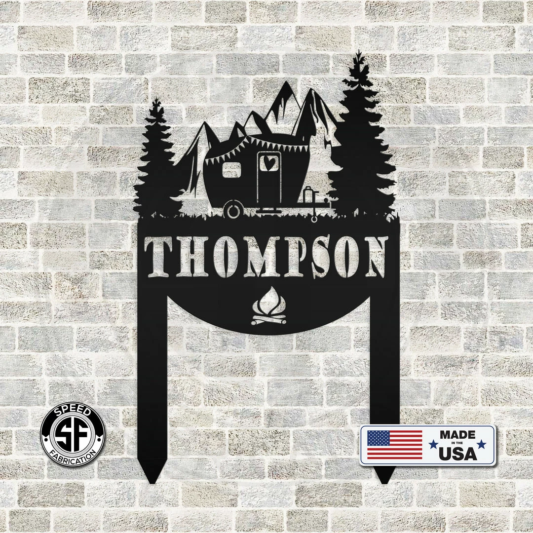 This Personalized Mountain Camper Yard Stake Metal Sign is the perfect sign for the outdoor lovers in your life. Sizing is for the height of the sign including the stakes. Our yard stake signs are made from 14 gauge steel with a powder coated finish for a long lasting sign indoors or outdoors.