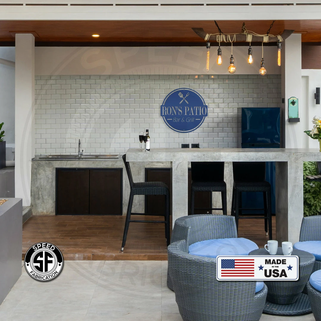This Personalized Patio Bar & Grill Metal Sign is the perfect sign for your backyard patio. Our 12″ through 28″ signs are made from 16 gauge steel, 30″ through 36″ signs are made from 14 gauge steel with a powder coated finish for a long lasting sign indoors or outdoors.