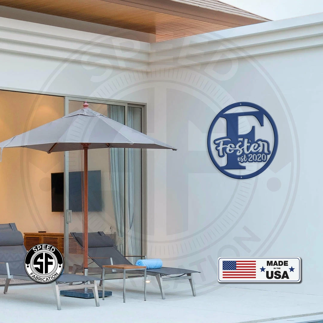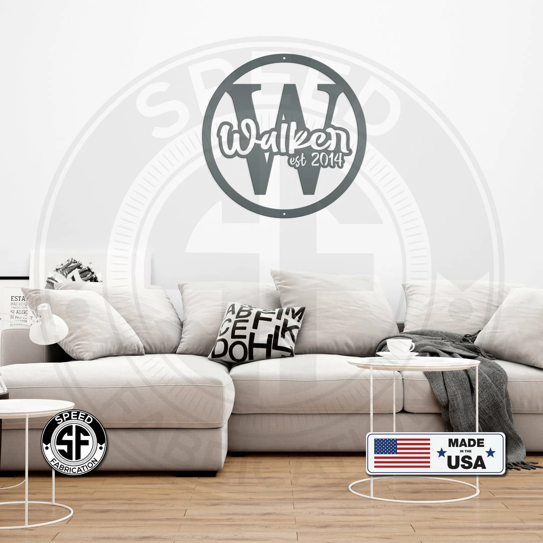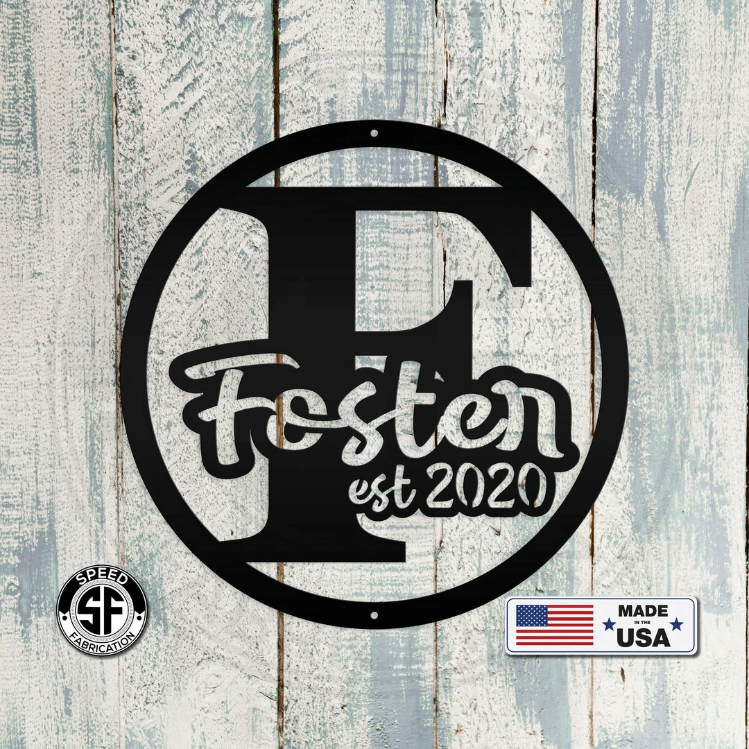 This Personalized Round Monogram with Established Date Metal Sign is the perfect dรฉcor for any home. A great personalized gift for your special someone. This design is square in dimensions, for a longer name the size will be for the width of the sign. Our 12″ through 28″ signs are made from 16 gauge steel, 30″ through 36″ signs are made from 14 gauge steel with a powder coated finish for a long lasting sign indoors or outdoors.