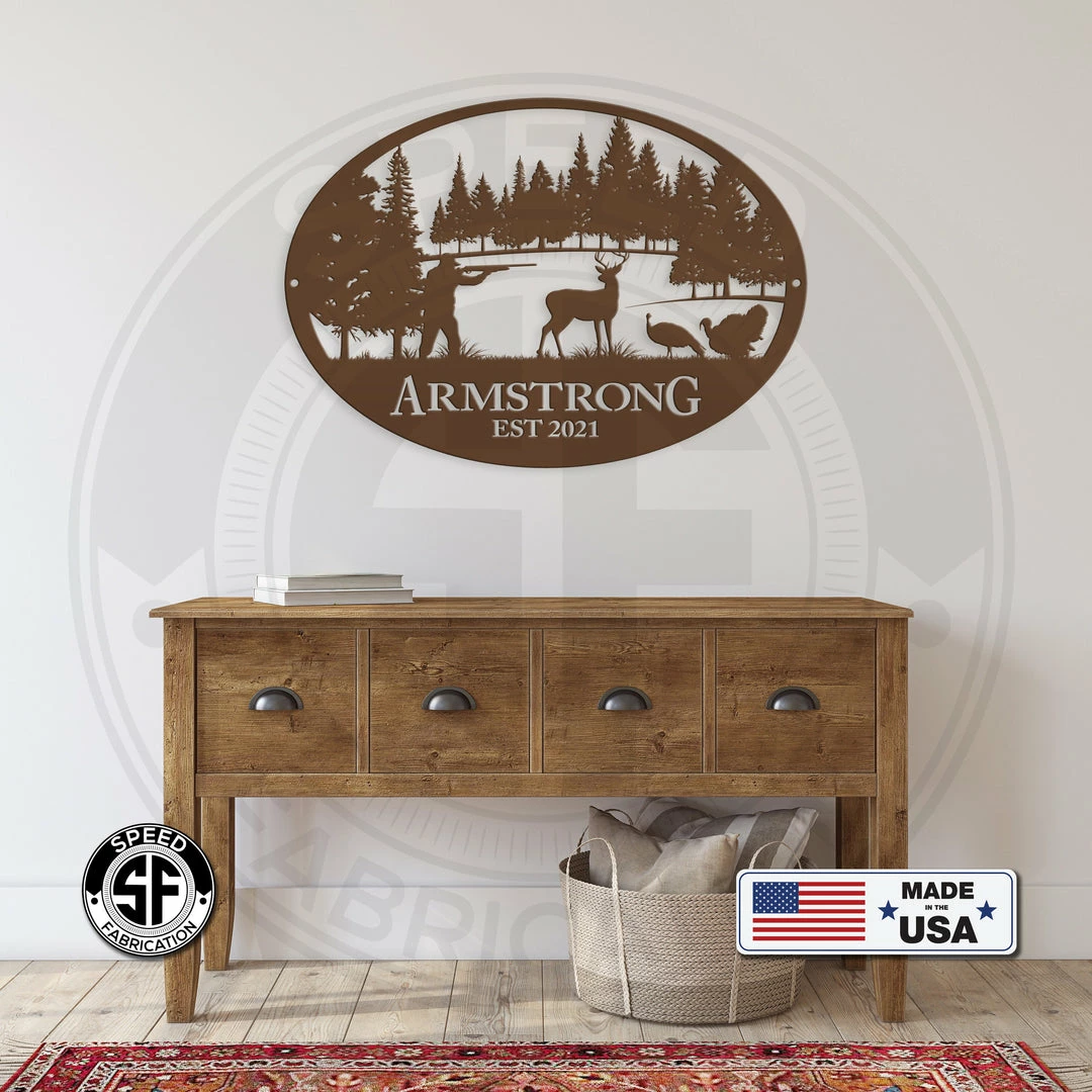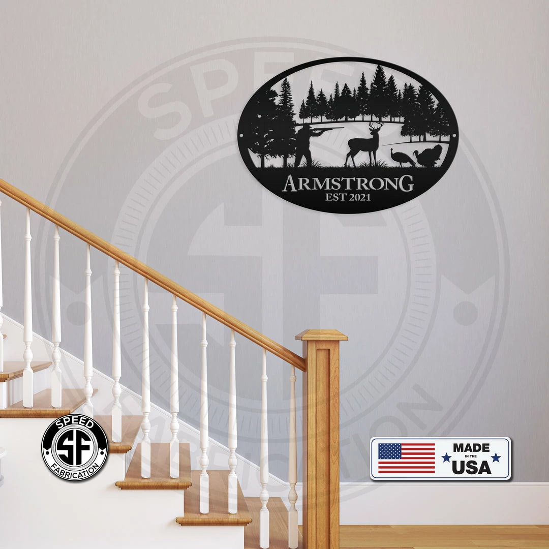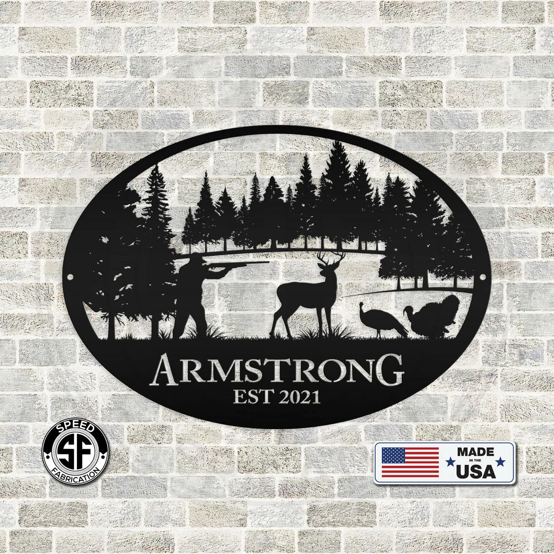 This Personalized Deer and Turkey Hunting Metal Sign is the perfect sign for your hunting cabin or home. Makes a great gift for the hunter in your life.