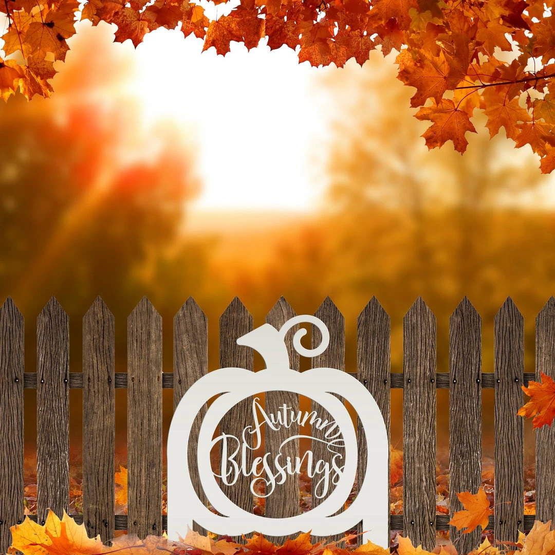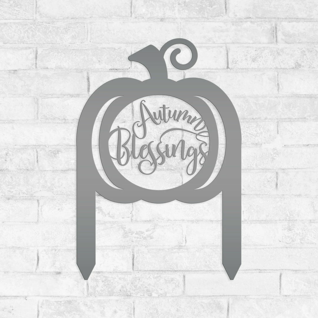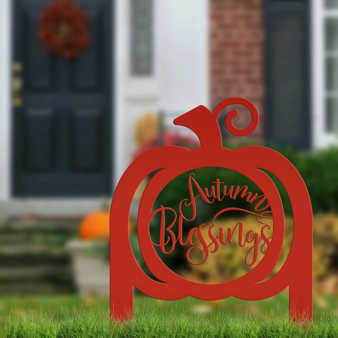 This Autumn Blessings Metal Yard Stake is the perfect autumn decor for your lawn or garden. Sizing is for the height of the sign including the stakes.