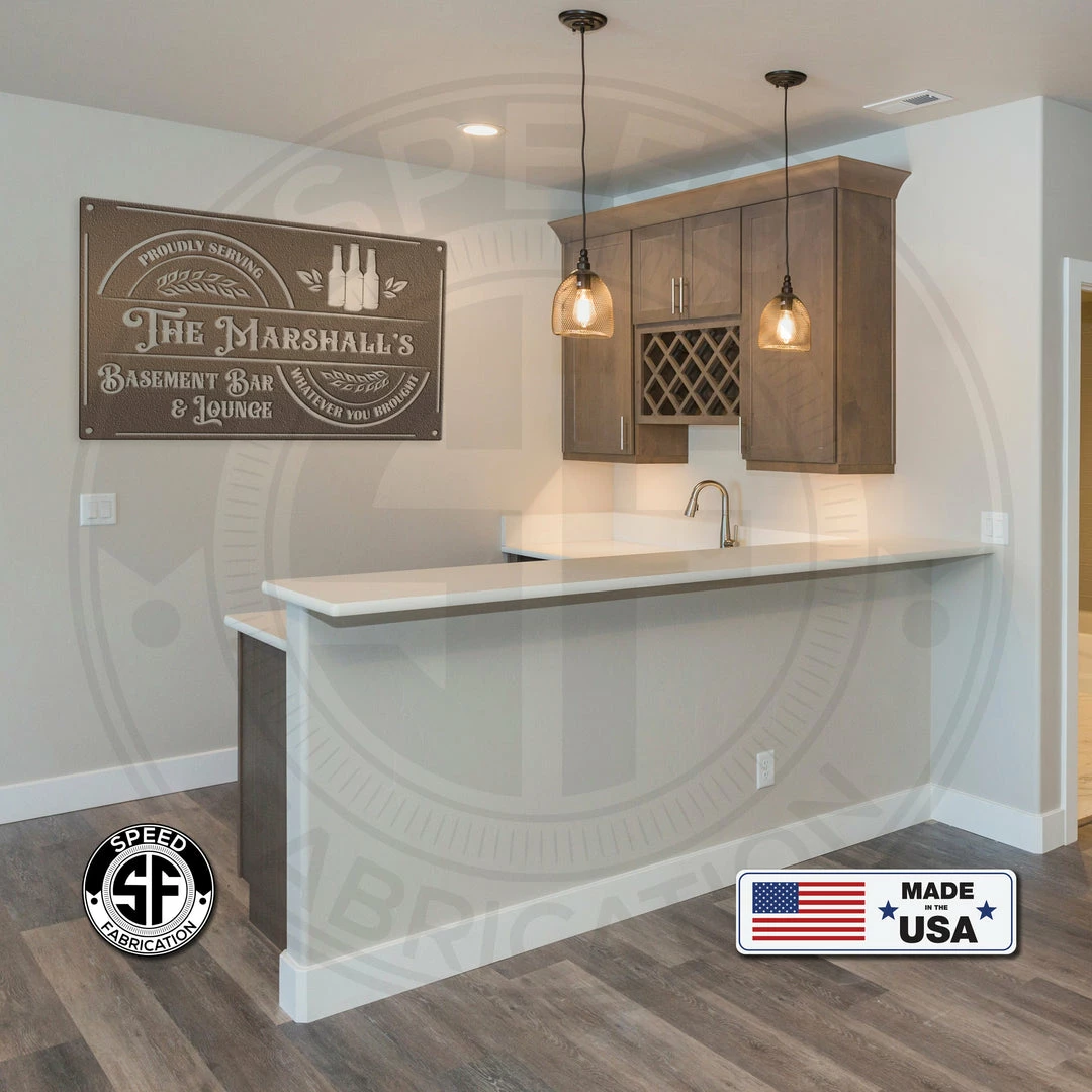 Our rectangle basement bar metal sign is the perfect decor for your man cave or lounge.