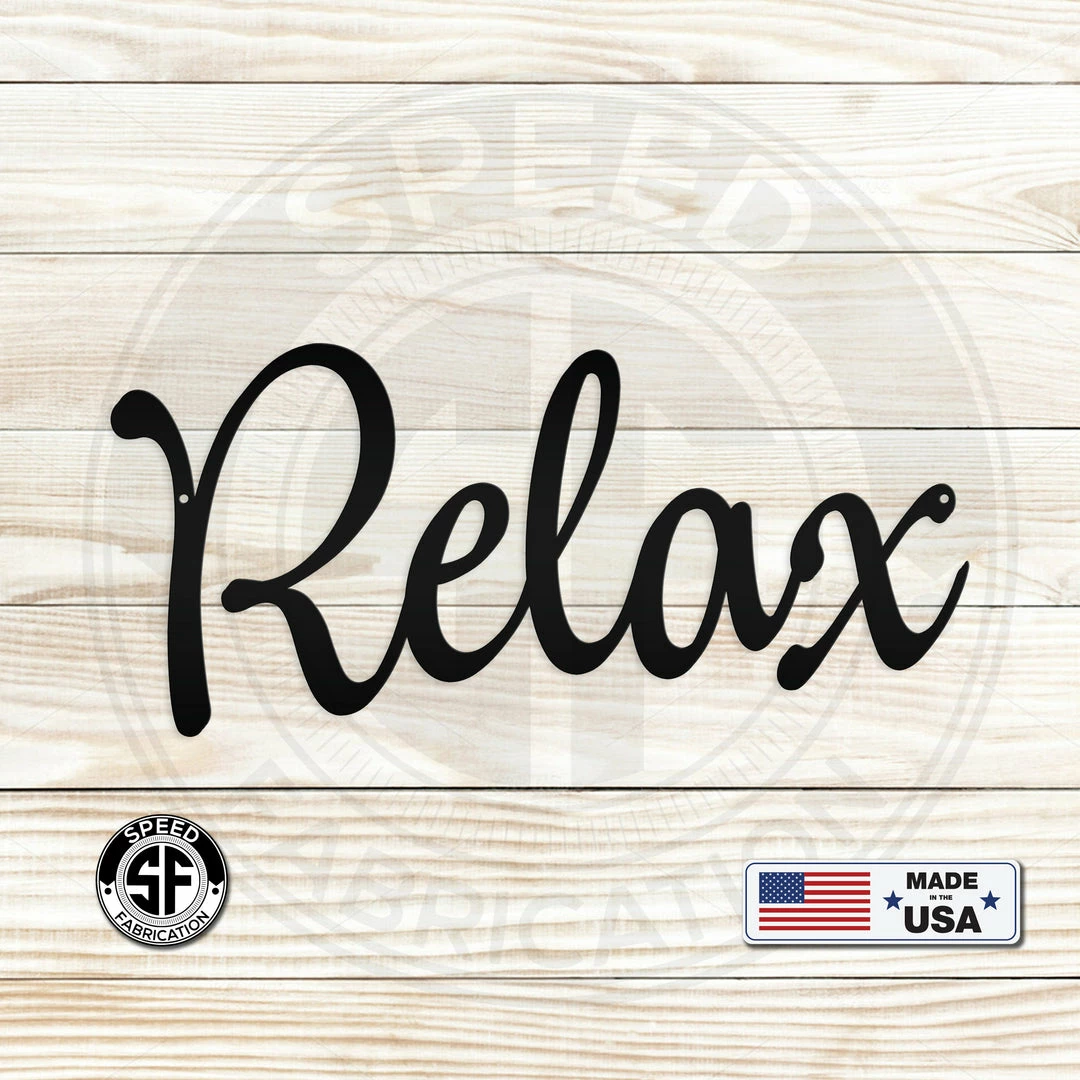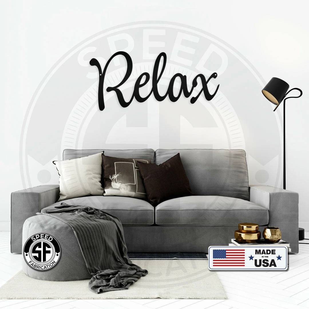 Our Relax Metal Sign is the perfect sign for any room designed to be comfortable and cozy. Our 12″ through 28″ signs are made from 16 gauge steel, 30″ through 36″ signs are made from 14 gauge steel with a powder coated finish for a long lasting sign indoors or outdoors.