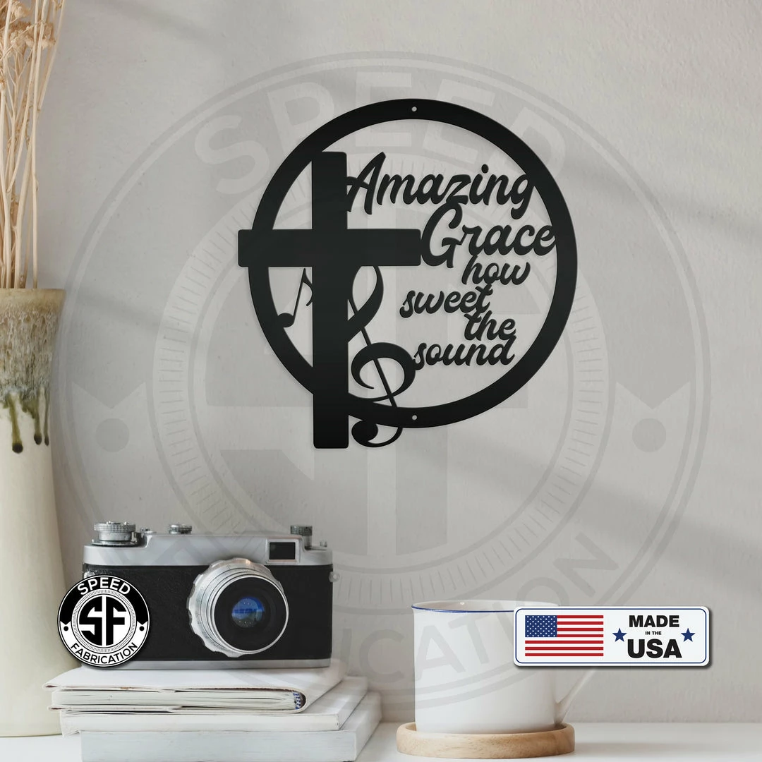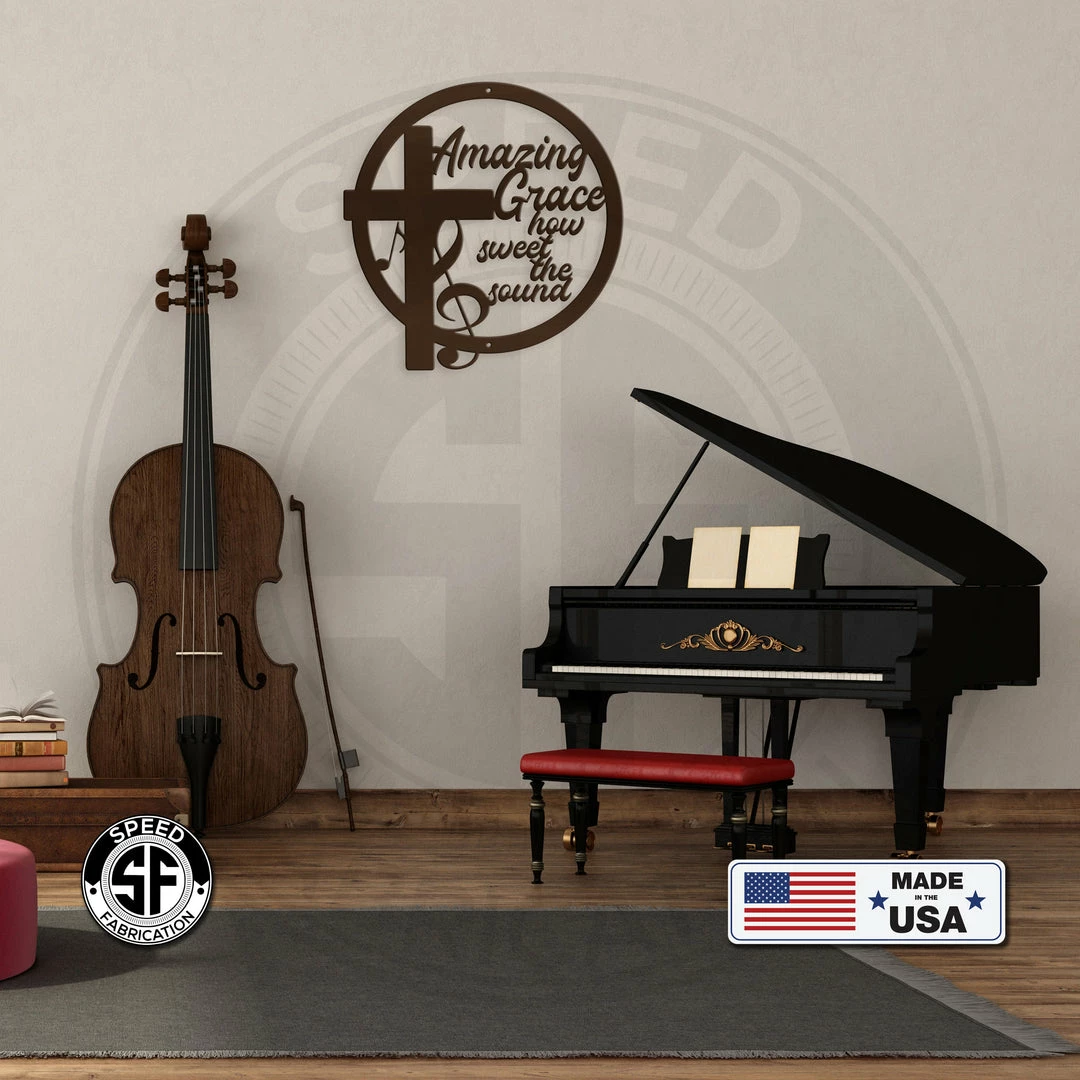 Our Amazing Grace Music Metal Sign is the perfect decor for any home. Makes a great gift for the musician in your life. Our 12″ through 28″ signs are made from 16 gauge steel, 30″ through 36″ signs are made from 14 gauge steel with a powder coated finish for a long lasting sign indoors or outdoors.