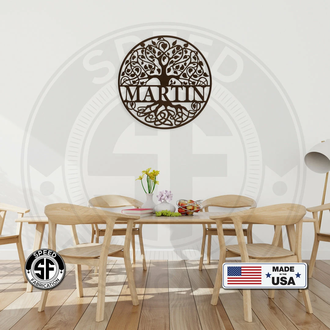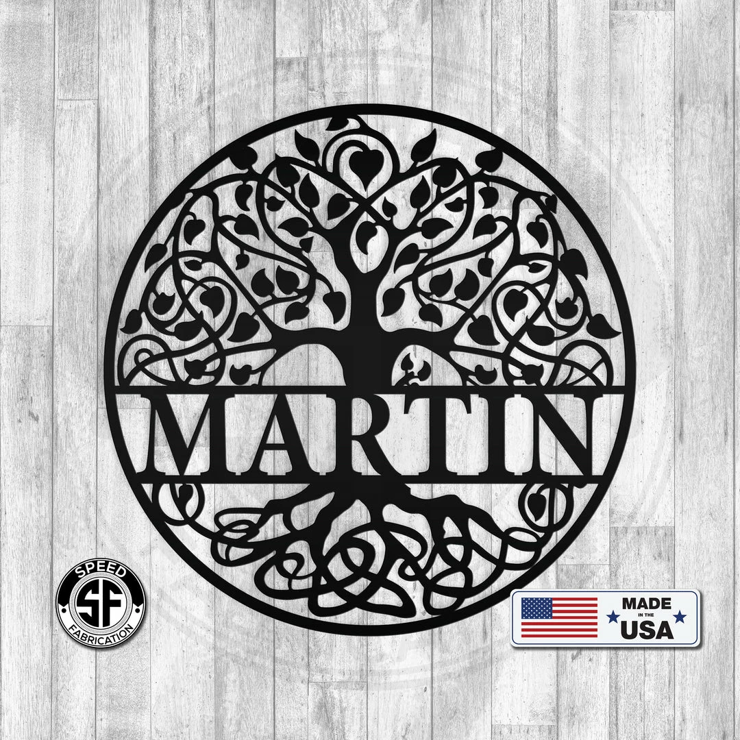This Personalized Round Family Tree Monogram Metal Sign is the perfect decor for any home. Makes a great Anniversary or Wedding Gift.