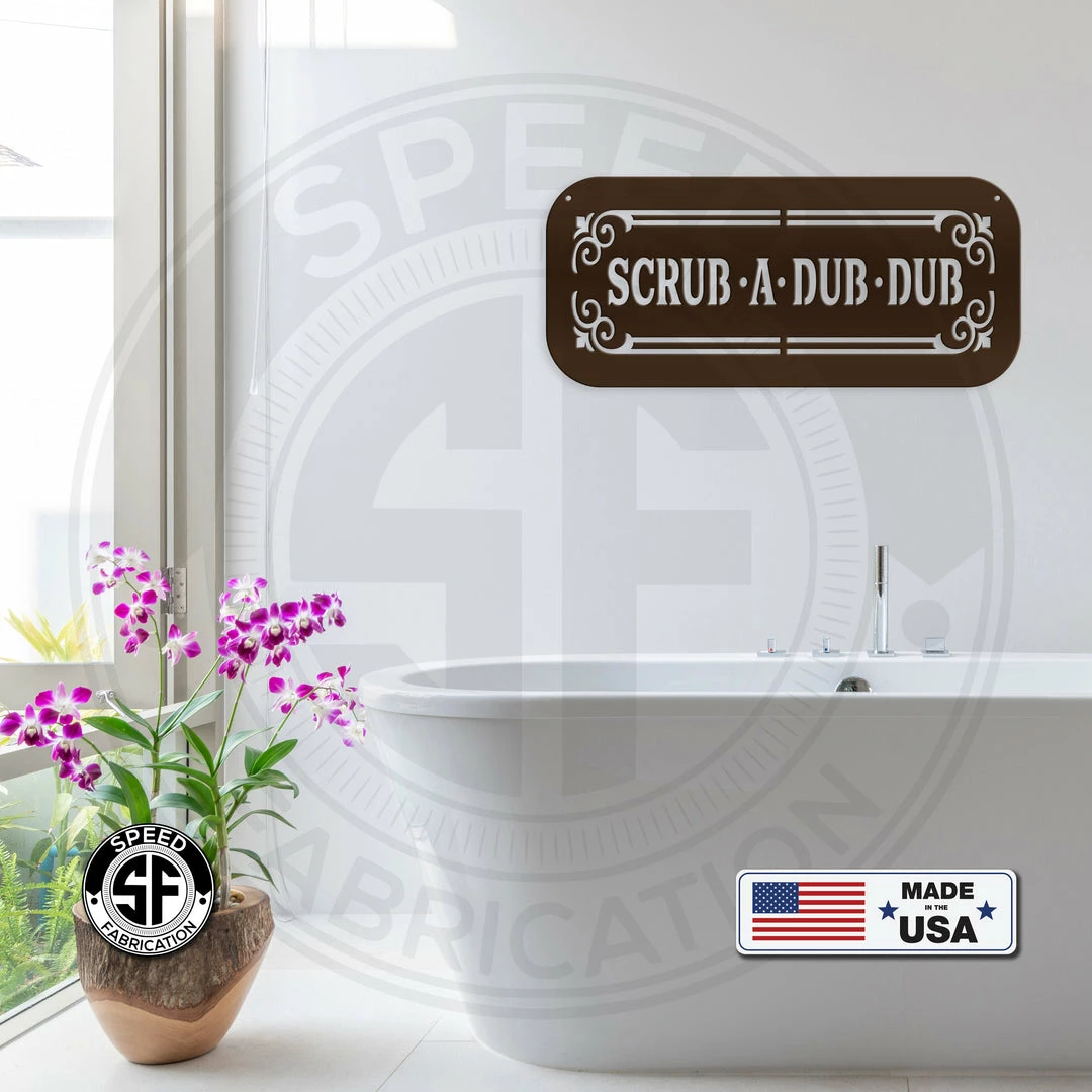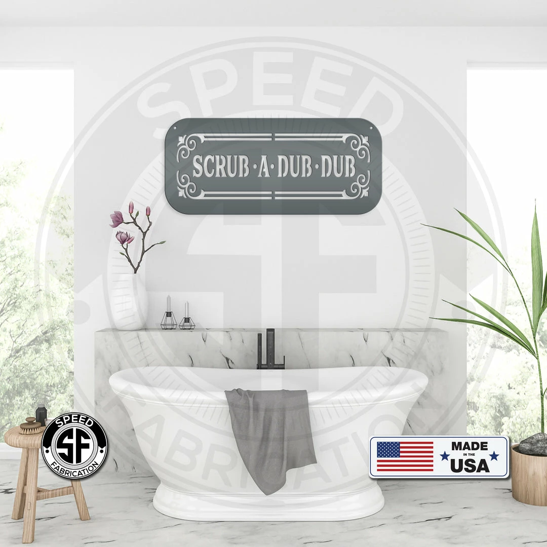 This Scrub A Dub Dub Bathroom Metal Sign is the perfect dΓ©cor for any bathroom. Sizing is for the width of the sign. Our 16″ through 28″ signs are made from 16 gauge steel, 30″ through 36″ signs are made from 14 gauge steel with a powder coated finish for a long lasting sign indoors or outdoors.