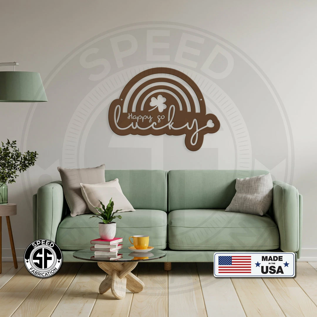 This Rainbow Happy Go Lucky St. Patrick’s Day Shamrock Metal Sign is the perfect decor to celebrate St. Patrick’s Day. Sizing is for the width of the sign. Our 10″ through 28″ signs are made from 16-gauge steel, 30″ through 36″ signs are made from 14-gauge steel with a powder coated finish for a long-lasting sign indoors or outdoors.