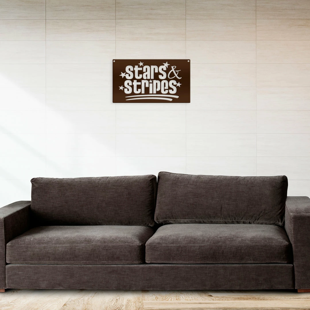 Our Starts & Stripes American Metal Sign is the perfect decor for any home. Our 12″ through 28″ signs are made from 16 gauge steel, 30″ through 36″ signs are made from 14 gauge steel with a powder coated finish for a long lasting sign indoors or outdoors.