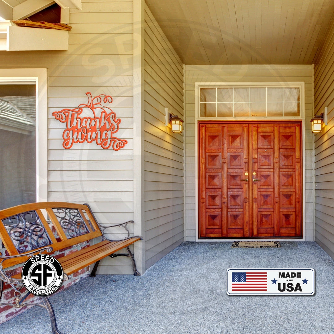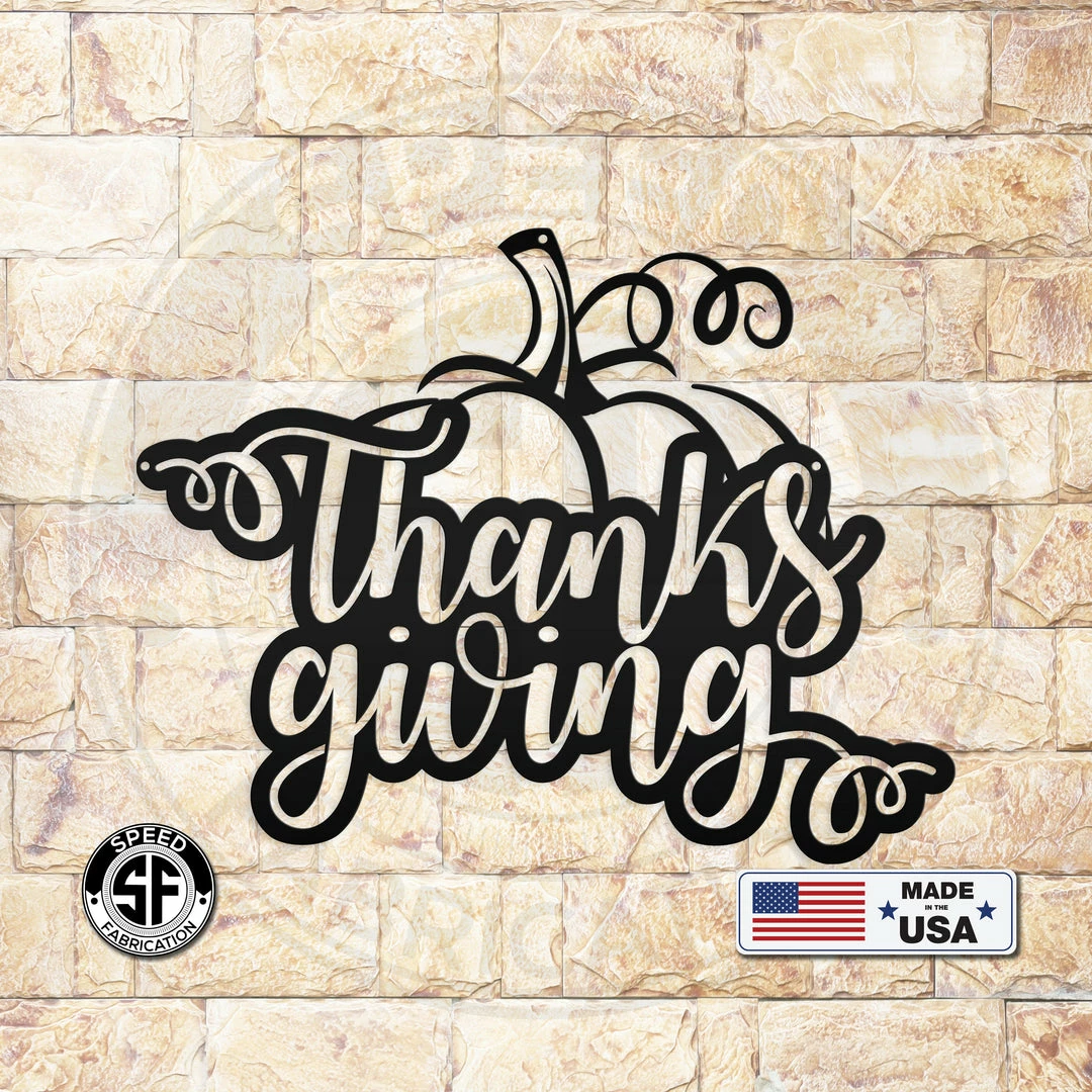 Our Thanksgiving Pumpkin Autumn Décor Metal Sign is the perfect Thanksgiving décor for any home. Sizing is for the width of the sign. Our 12″ through 28″ signs are made from 16 gauge steel, 30″ through 36″ signs are made from 14 gauge steel with a powder coated finish for a long lasting sign indoors or outdoors.