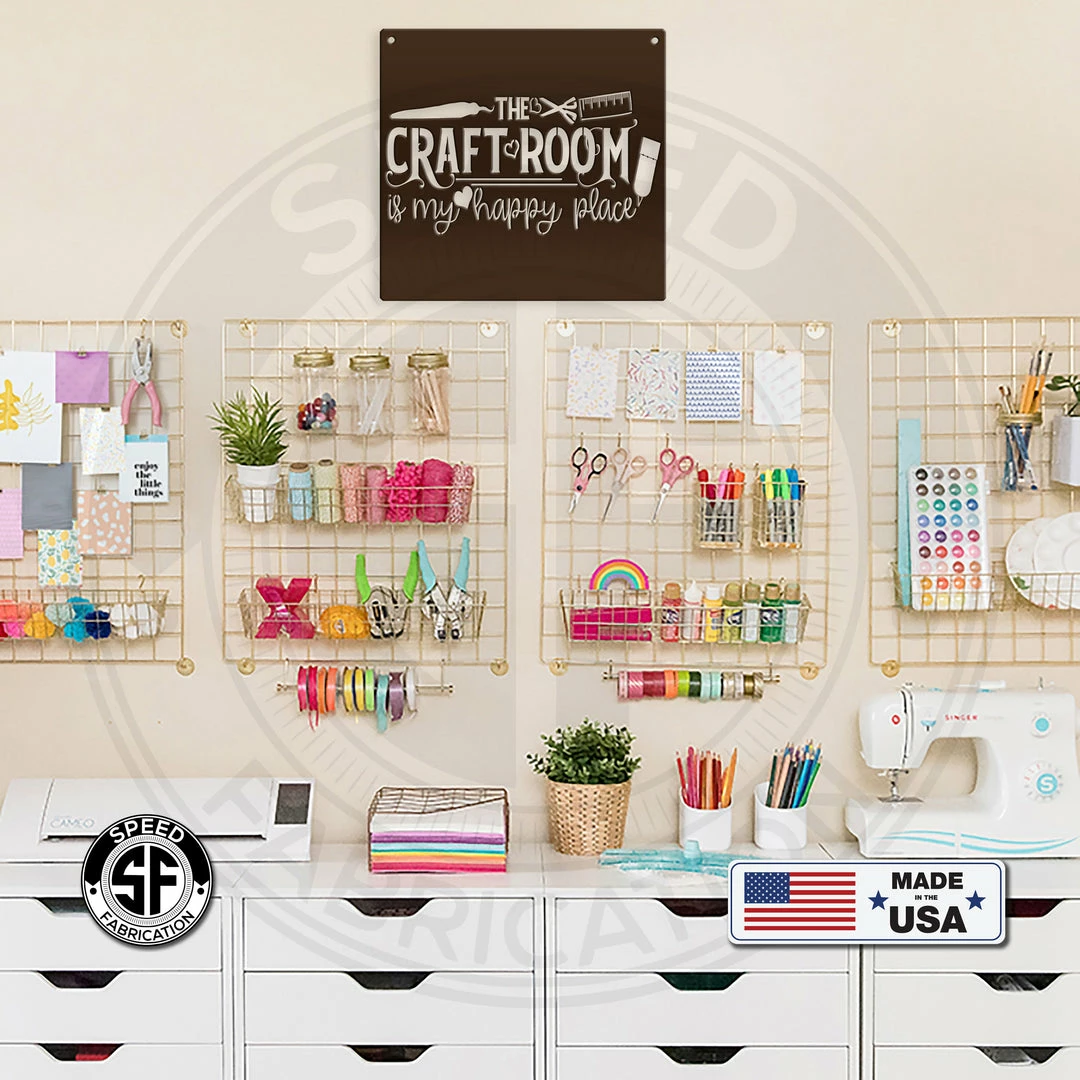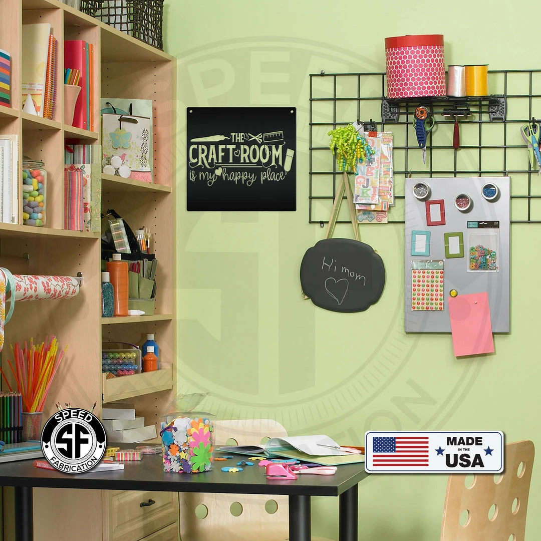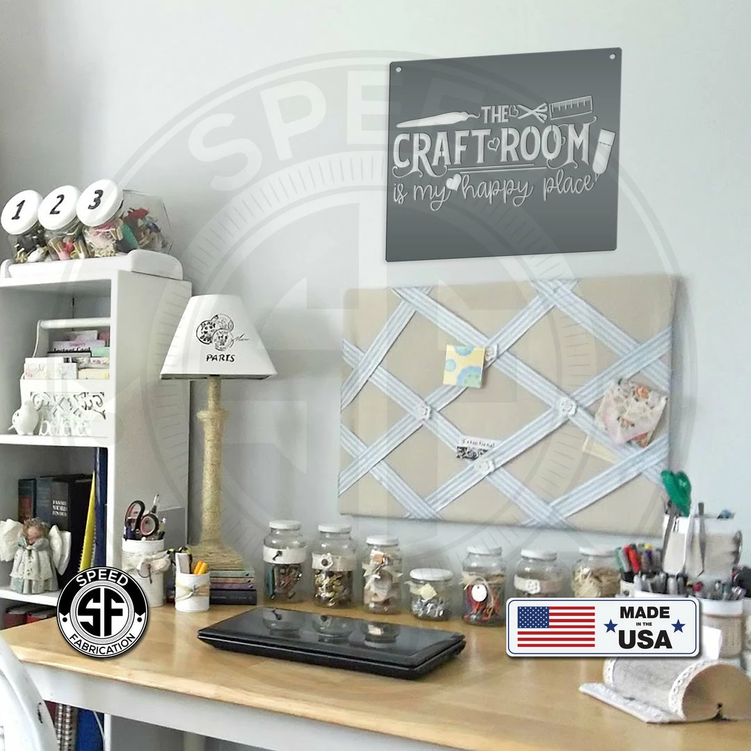 The Craft Room Is My Happy Place Metal Sign is the perfect decor for any craft room. Also makes a great gift for the crafter in your life. Our 12″ through 28″ signs are made from 16 gauge steel, 30″ through 36″ signs are made from 14 gauge steel with a powder coated finish for a long lasting sign indoors or outdoors.