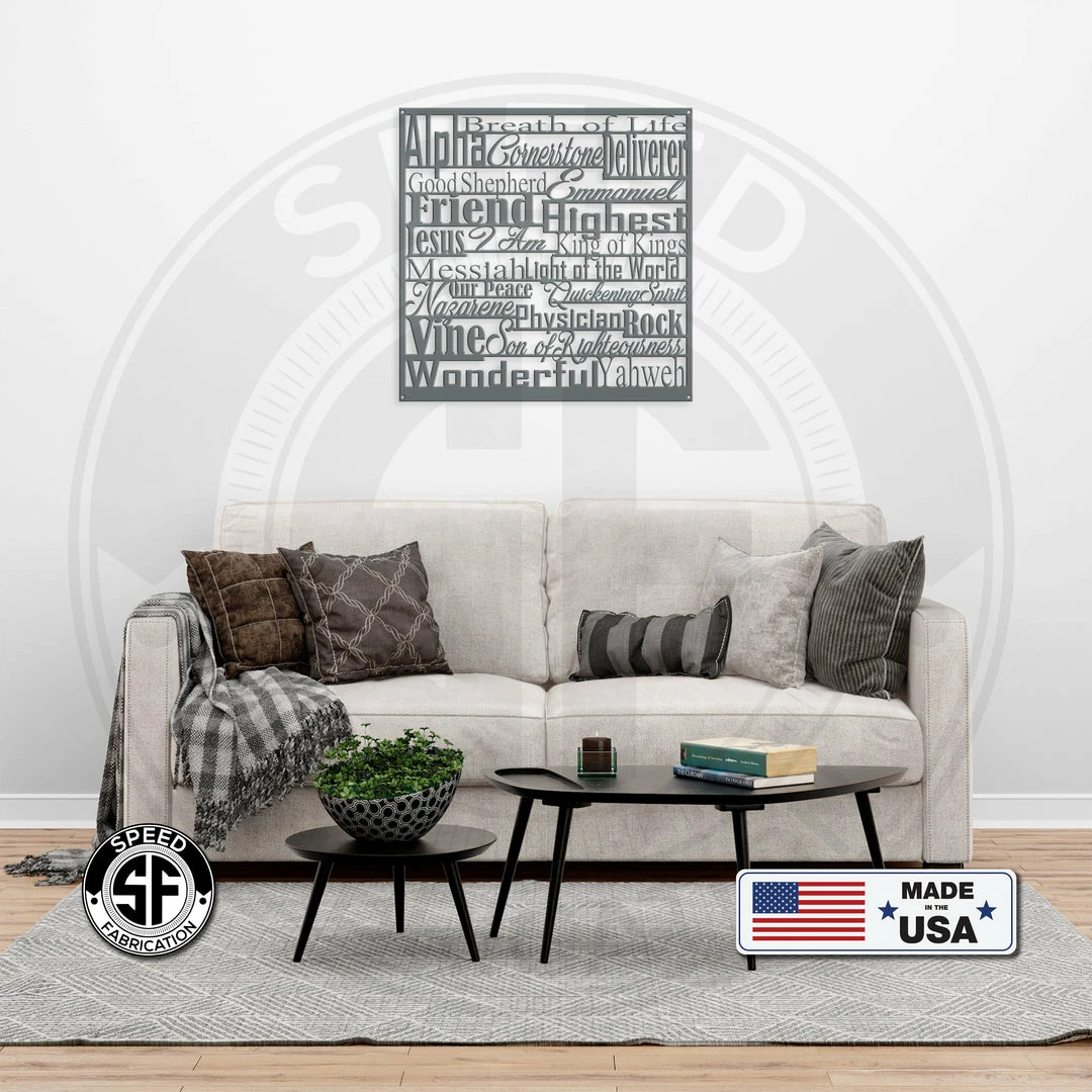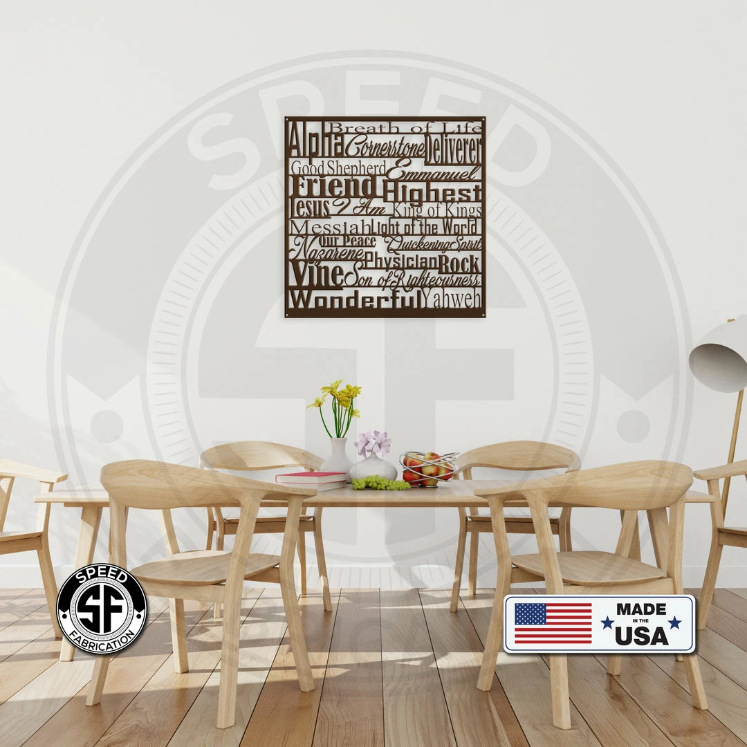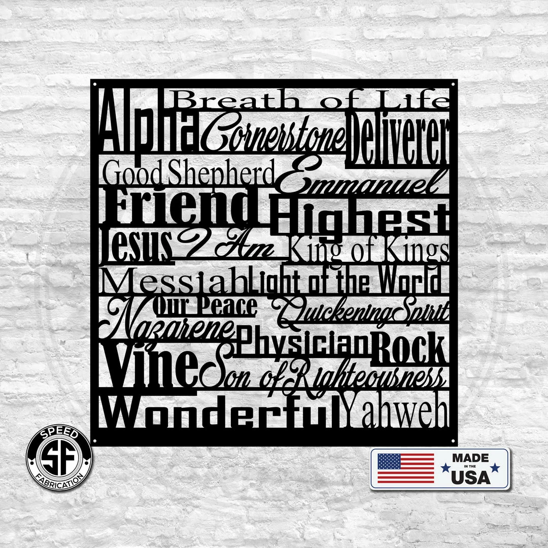 This gorgeous custom piece, is a Speed Fabrication original, and was created by my wife. She was inspired by all of the names used in the Bible for Jesus. She placed the names in alphabetical order from top to bottom in A-Z order. Obviously, there are more names used than this, but she narrowed it down to one per letter of the alphabet. Some letters don’t have a name, so they were skipped.