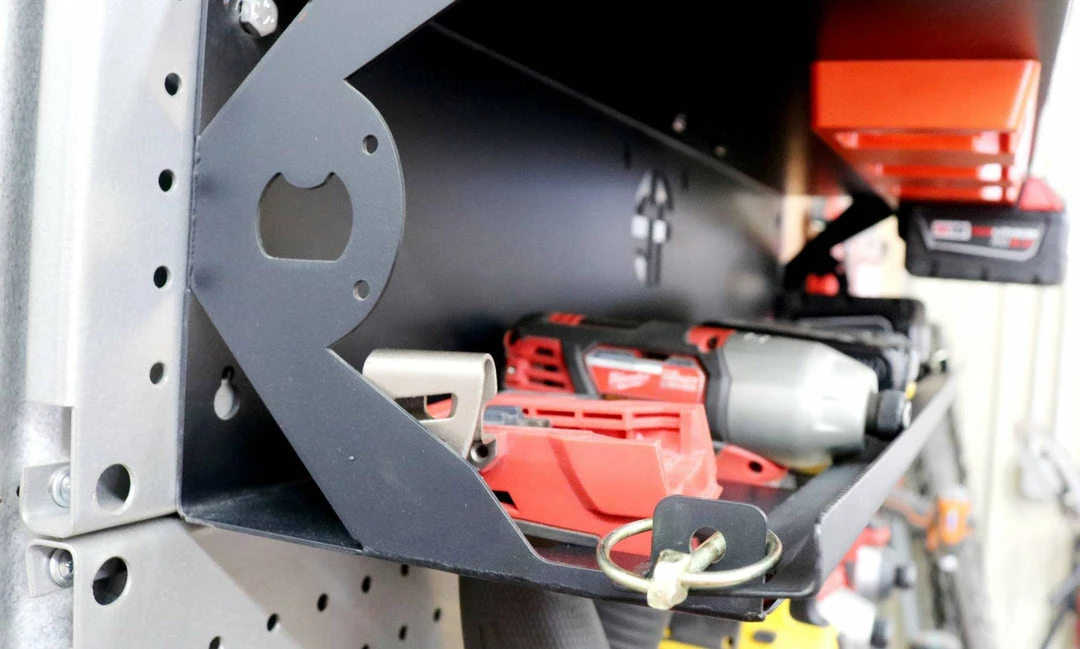 This power tool & battery rack is designed from our popular Ultimate Power Deck with a retainer bar just like our trailer tool holder.