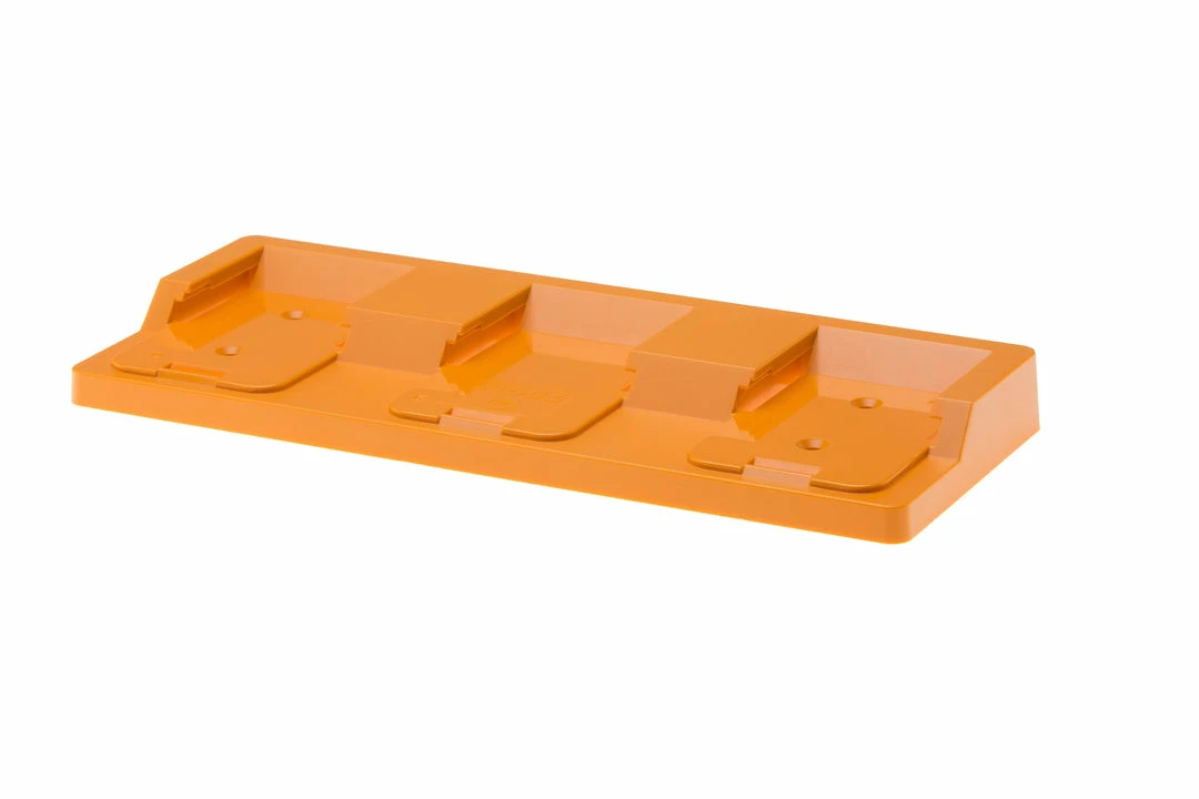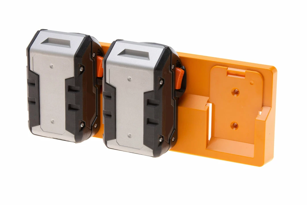 Use this holder to easily mount your Ridgid 18V batteries to your wall, under your workbench or in your trailer or van. Batteries clip in using the existing locking clip, so can be mounted in any direction.