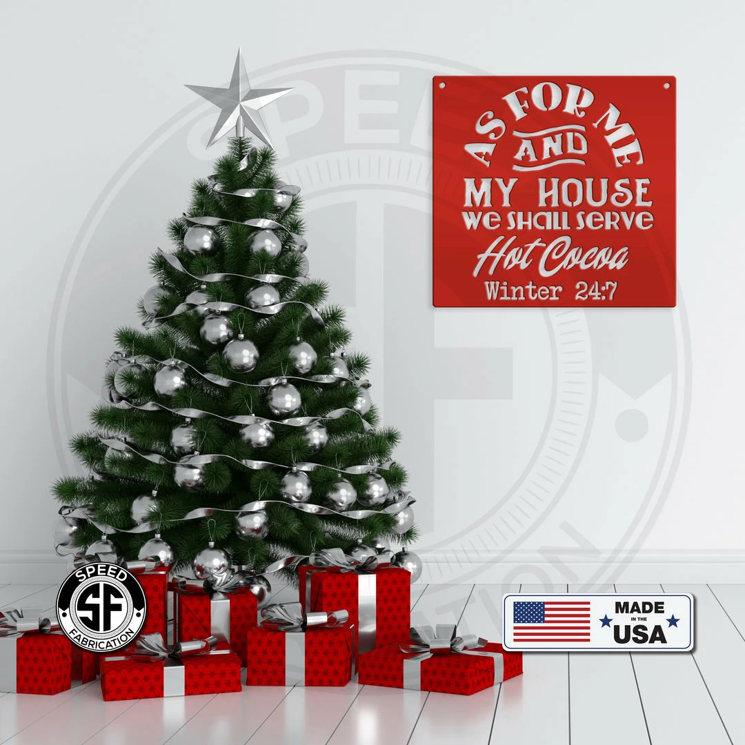 Our We Shall Serve Hot Cocoa Winter 24:7 Christmas Metal Sign is the perfect Christmas decor for any home. Our 12″ through 28″ signs are made from 16 gauge steel, 30″ through 36″ signs are made from 14 gauge steel with a powder coated finish for a long lasting sign indoors or outdoors.